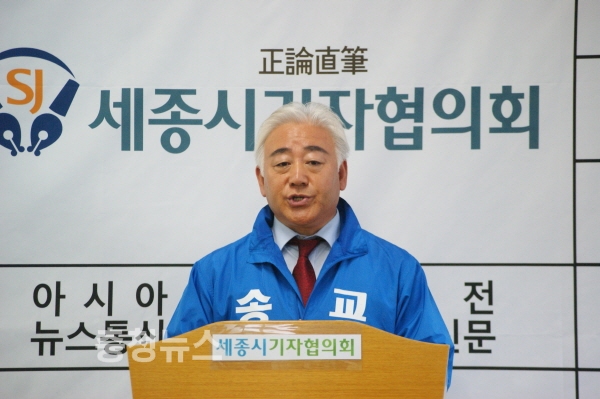 세종기자협은 송명석 예비 후보만의 출마동기와 공약 등을 듣는 시간을 마련했다.