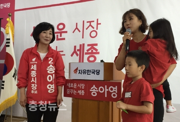 또한, 고은정(종촌동)씨의 자녀들이 송아영 세종시장 후보를 위한 편지를 낭독했다. 최정민(6세) 어린이는 "놀이터에서 마음껏 뛰어놀고 싶지만 미세먼지 때문에 놀러 다니지 못해요. 시장 후보님이 미세먼지 문제를 꼭 해결해주세요." 라는 내용의 편지를 읽었다.