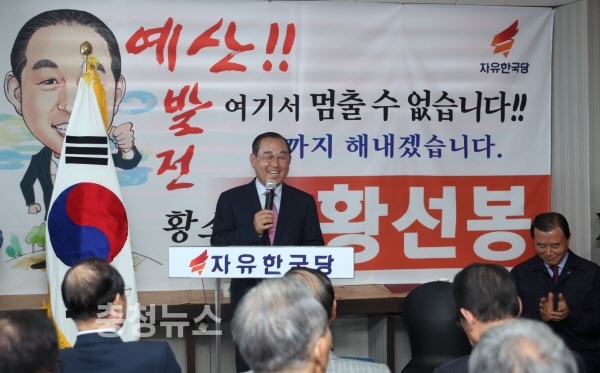 황선봉 자유한국당 예산군수 후보는 20일 선거 사무소 개소식에서 첫 일성으로 "품격 있고 살기 좋은 예산군을 책임지기 위해 이 자리에 섰습니다. 새로운 4년 예산 군민의 압도적 신임을 받아 더욱 도약하는 예산군의 새 시대를 열어 가겠습니다.”라고 밝혔다.