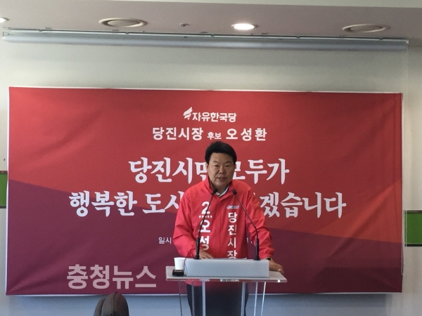 자유한국당 오성환 당진시장 후보는 21일 당진시청 브리핑룸에서 복지, 환경, 문화관광, 명품도시건설분야에 대해 두번째 공약을 발표했다.