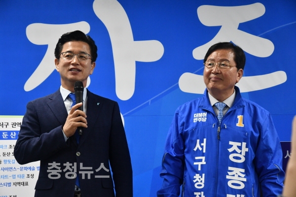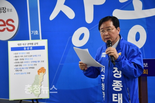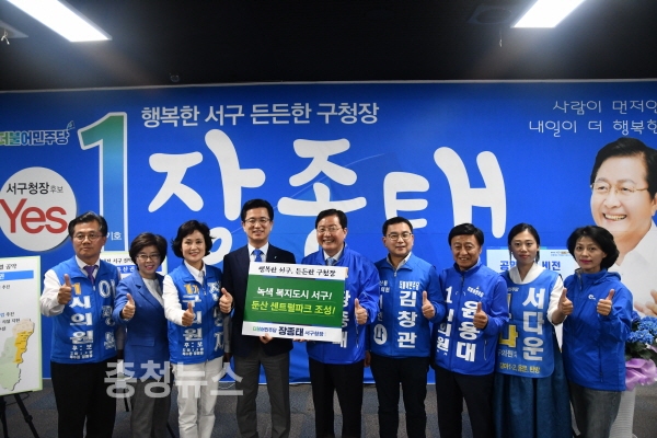장종태 후보는 23일 자신의 선거 사무실에서 허태정 대전시장 후보, 더불어민주당 서구지역 시·구의원 후보들이 참석한 가운데 ‘서구 권역별 공약’을 발표했다.