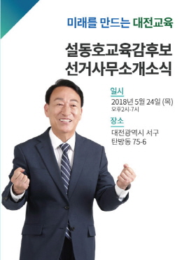 설동호 대전교육감 예비후보가 24일 오후 2시 선거사무소 개소식을 갖는다.