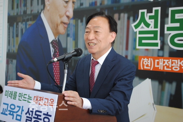 설 후보는 인사말에서 "초,중,고 교사, 대학교수, 총장, 교육감을 거친 철저히 검증된 후보"라고 자평한 뒤 "교육현장과 산업현장, 다양한 분야에서 나아갈 방향을 설정하고 실천할 수 있는 전문성을 터득했다"고 말했다.