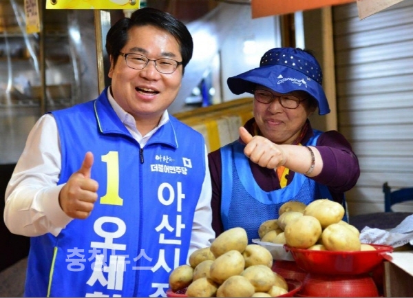 오세현 아산시장 후보는 선관위 등록 후 온양풍물 5일장을 찾아 상인 및 장을 찾은 시민들과 소통하며 아산의 바닥 민심을 수렴하는 것으로 첫 행보를 내디뎠다.
