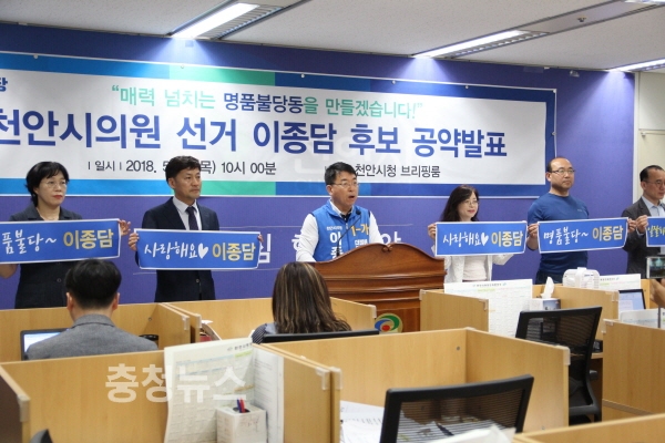천안시 브리핑실에서 열린 이날 발표에서 이종담 의원은 "불당동을 다른 읍면동과 차별화 하고 품격을 높일 공약"이라며 공약의 의의를 강조하며 발표를 시작했다.