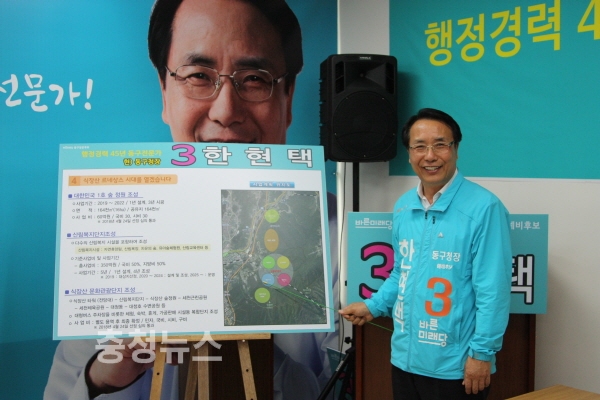 한 후보는 이날 대동 선거사무소에서 열린 제1차 공약 발표회에서 민선 5기부터 이어진 정책기조 유지, 진행되는 사업의 마무리 등을 약속하면서 식장산 문화관광단지 조성에 무게를 실었다.