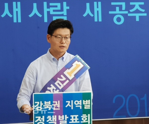 김정섭 더불어민주당 공주시장 후보가 30일 ‘강북권역 지역별 공약’ 정책발표 기자간담회를 개최했다.
