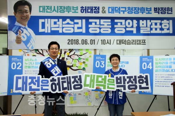 한편 박 후보는 허태정 대전시장 후보와 함께 ▲충청권 ‘미래철도 ICT 산업 슈퍼클러스터’ 조성 ▲동부권 제2 대덕밸리 조성 ▲신탄진 ‘평생학습시설’ 설립 ▲공공산후조리원 건립 ▲대덕구민의 공유공간 20곳 조성 ▲대덕노인복지회관 설립 등을 공동으로 추진키로 했다.