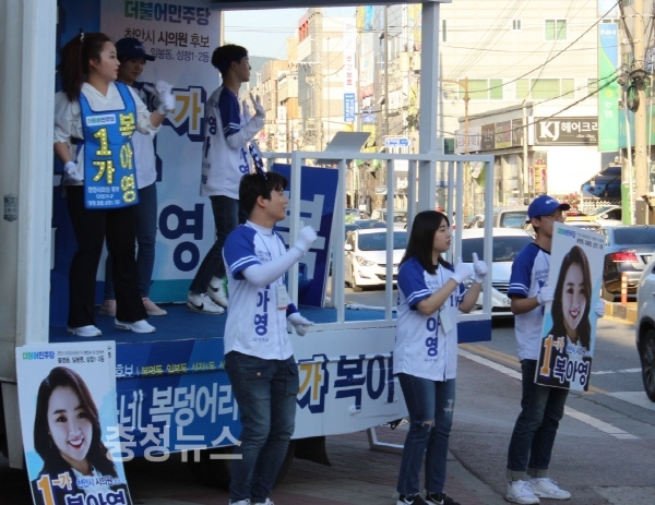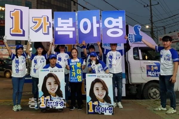 6.13 전국 동시지방선거 운동이 본격적으로 시작 되면서 복아영 천안시의원 후보(봉명,일봉,성정1.2동)의 ‘뿜뿜유세단’이 주목을 받고 있다.