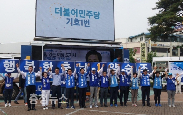 한편 강 전 장관과 권 의원, 양승조 후보, 오세현 후보 등은 집중유세 전 온양 향토5일장 장과 전통시장 등을 돌며 시민들을 상대로 열띤 선거운동을 벌였다.