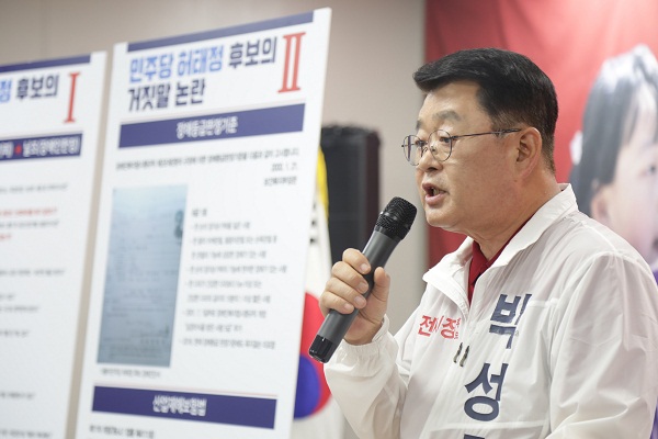 박성효 자유한국당 대전시장 후보가 더불어민주당 허태정 후보를 둘러싼 각종 의혹과 관련, 일부 시민사회단체에 대한 자성을 촉구하고 나섰다.