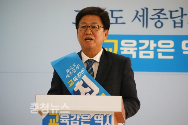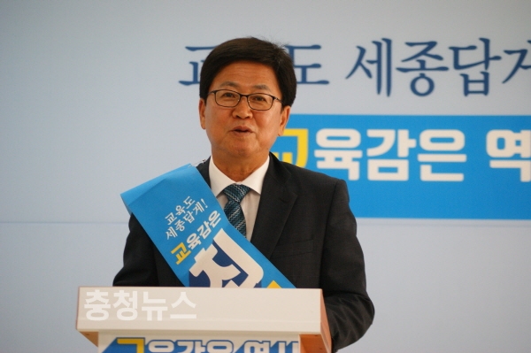 최교진 세종시교육감 후보는 5일 선거캠프 언론브리핑룸에서 교육자치권 확보, M9 학교설립 재추진 등 세종지역 교육여건 관련 4대 공약을 발표했다.