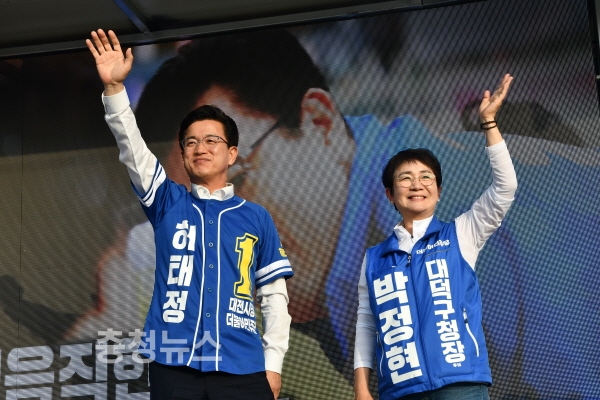 허 후보는 이날 오후 6시 대덕구 오정네거리에서 박정현 구청장 후보, 손희역 대전시의원 후보 등 대덕구 1선거구 출마자들과 유세를 갖고 강행군을 이어갔다.