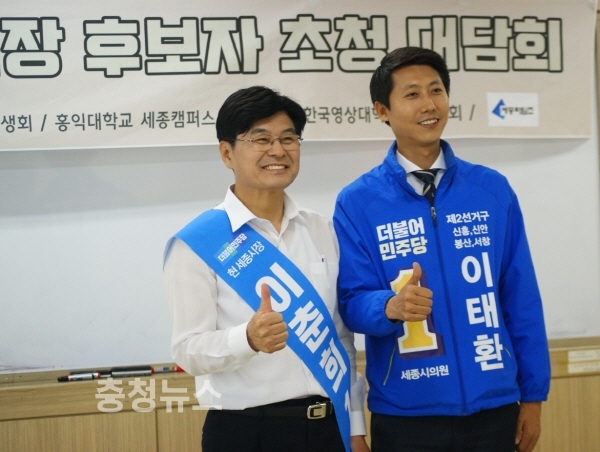 이날 더불어민주당 기호 1번 이태환 세종시의원 후보(제2선구)는 이춘희 세종시장 후보 초청 대담회을 참관하며 “청년들의 의견과 애로 사항을 청취하며 앞으로 학생들의 창구 역할을 하겠다”고 다짐했다.