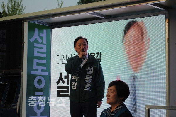 설 후보는 "초.중.고.교수.총장 그리고 교육감을 지내며 미래교육을 구상하고 실천할 수 있는 힘을 가졌다"며 "새로운 구상으로 대전교육이 한국교육의 중심으로 발전할 수 있도록 믿고 선택해 달라"고 호소했다.