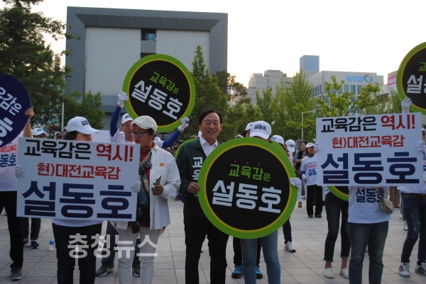 설 후보는 단상에 올라 이번 선거에 대해 전교조 지부장과 교육감의 대결의 장이라고 표현하며 자신은 철저히 검증된 후보임을 거듭 강조했다.