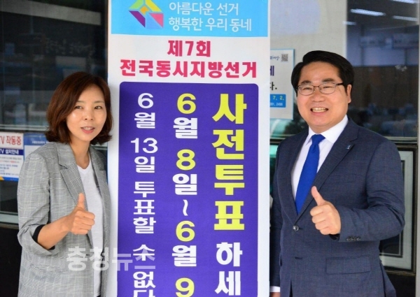 오세현 더불어민주당 아산시장 후보는 8일 오전 부인 윤순원 씨와 함께 온양3동사무소를 찾아 사전투표로 소중한 권리를 행사했다.