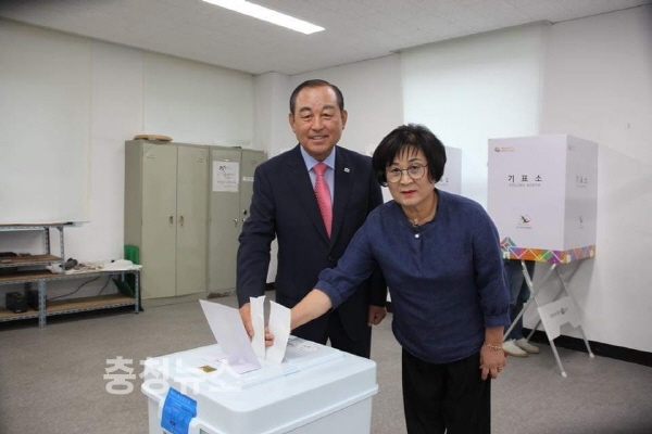 황선봉 자유한국당 예산군수 후보는 8일 오전 8시 예산문화원에 마련된 사전투표소를 방문하여 선관위 관계자들을 격려하고 부부와 함께 사전투표를 했다.