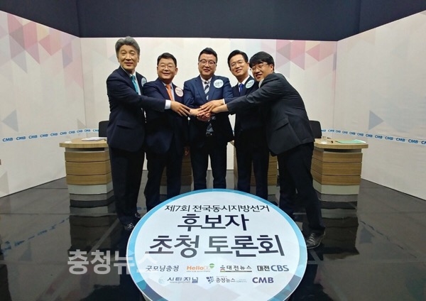 9일 CMB대전방송과 충청뉴스 등이 공동으로 마련한 대전시장 후보자 초청 토론회에 허태정, 박성효, 남충희, 김윤기 후보가 모두 참석했다.