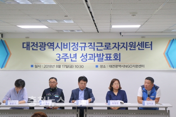 대전시의회(의장 김종천) 윤용대 부의장(더불어민주당, 서구4), 오광영 의원(더불어민주당, 유성2)은 17일 오전 대전광역시 NGO지원센터에서 열린 대전광역시비정규직근로자지원센터 3주년 기념 성과발표 및 토론회에 참석해 열띤 토론을 벌였다
