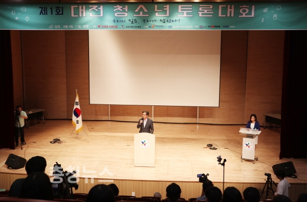 대전 유성구(구청장 정용래)는 지난 18일 유성구청소년수련관에서 약 200여명의 청소년들이 참여한 가운데 ‘제1회 대전 청소년 토론대회’를 성황리에 개최했다.