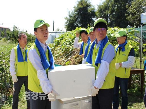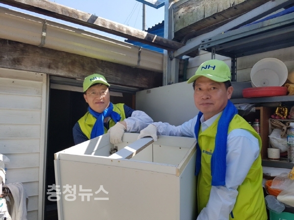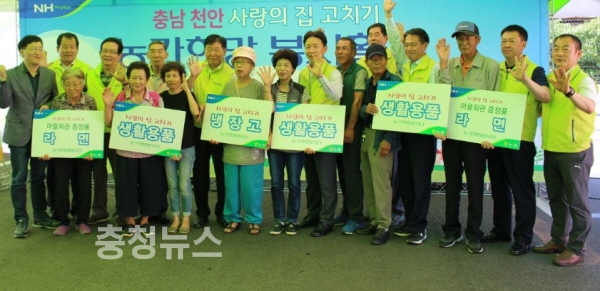 농협중앙회(회장 김병원)의 사랑의 집고치기“농가희망봉사단”(단장 이대엽 인사총무부장)과 충남농협(본부장 조소행) 봉사단원 40여명은 충남 천안 관내 농가 총 6가구를 대상으로 사랑의 집 고치기 봉사활동을 실시하고 군서리마을 경로당에 에어컨과 생활용품을 기증했다.