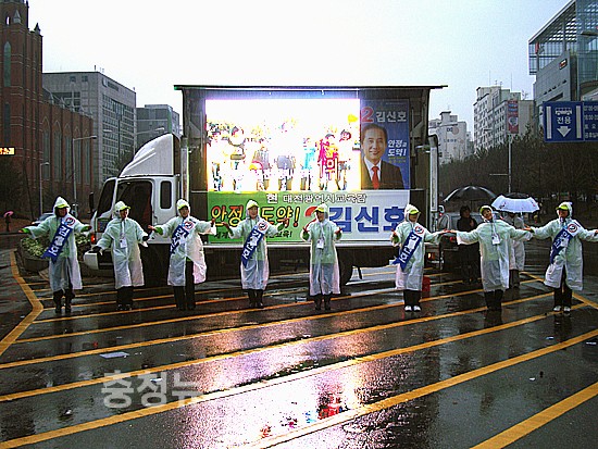 ▲ 김신호 선거운동원들은 선거운동 첫날인 12월4일 아침일찍 대전시 서구 경성큰마을 아파트 4거리에 집결 선거운동 출정식을 갖고 출근길 인사를 시작했다.