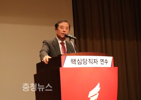 이날 핵심당직자 연수에는 홍문표(홍성.예산), 이명수(아산갑), 김태흠(보령.서천), 성일종(서산.태안) 국회의원, 이창수 충남도당위원장, 김석환 홍성군수, 황선봉 예산군수 등을 비롯한 당원협의회 핵심 당원 등 300여명이 참석했다.