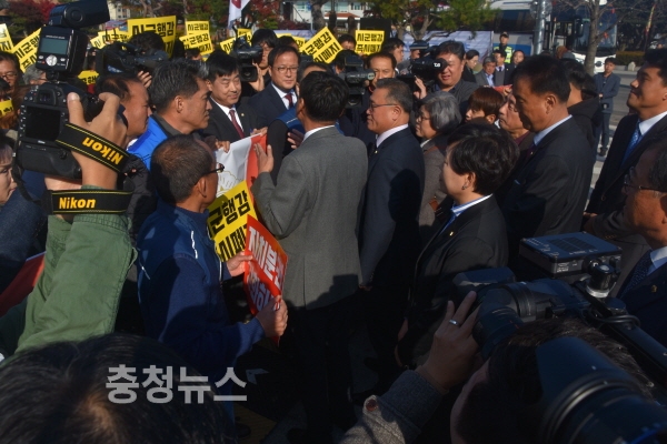 한편 공대위와 기초의회의 저지에 마찰을 빚던 도의원들은 결국 군청 앞에서 성명서를 발표하고 강력 대응을 예고하고 나섰다.