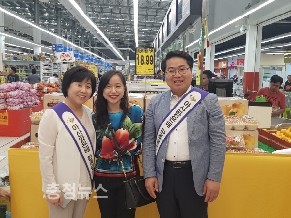 충남 아산시(시장 오세현)가 관내 신선농산물의 해외 수출확대를 위해 지난 5일부터 13일까지 베트남, 말레이시아의 대형마트를 순회하며 아산배 홍보 판촉행사를 실시했다고 밝혔다.