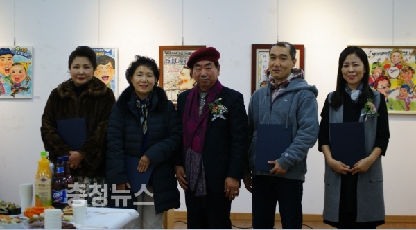 위촉장 수여 캐리커처 박재영, 풍속화 고명순, 인물화 김혜순 캘리그라피 김순자