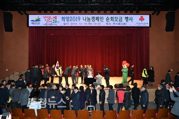 충남 예산군은 지난 18일 군청 추사홀에서 ‘희망2019 나눔 캠페인 순회모금 행사’를 개최했다고 밝혔다.
