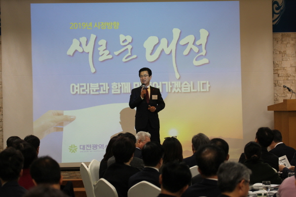 또한, 2019년 대전시의 역점과제로 ▲개방과 혁신으로 살찌는 경제 ▲삶의 품격을 누리는 생활 ▲안전하고 편리한 도시 ▲교육과 문화가 꽃피는 공동체 ▲시민이 주인되는 시정 등 5대 분야 93개 공약을 선정했다고 소개했다.