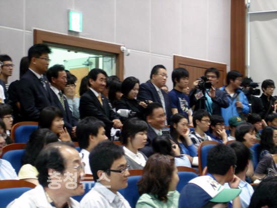 ▲ 이회창 총재의 특강을 듣고 있는 충남대 학생들과 주요당직자들