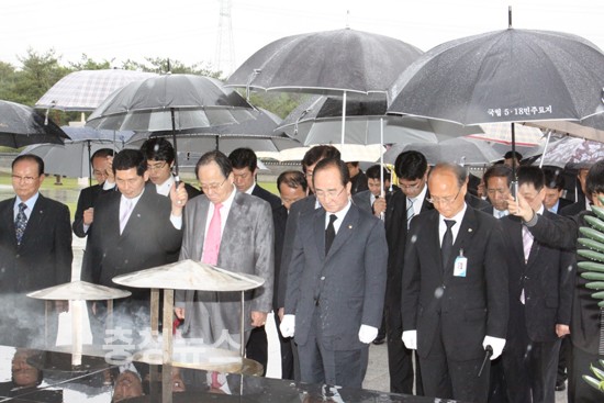 ▲ 광주 망월동 묘지에 간 심대평 대표
