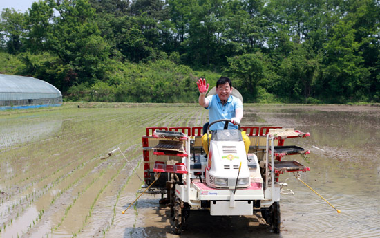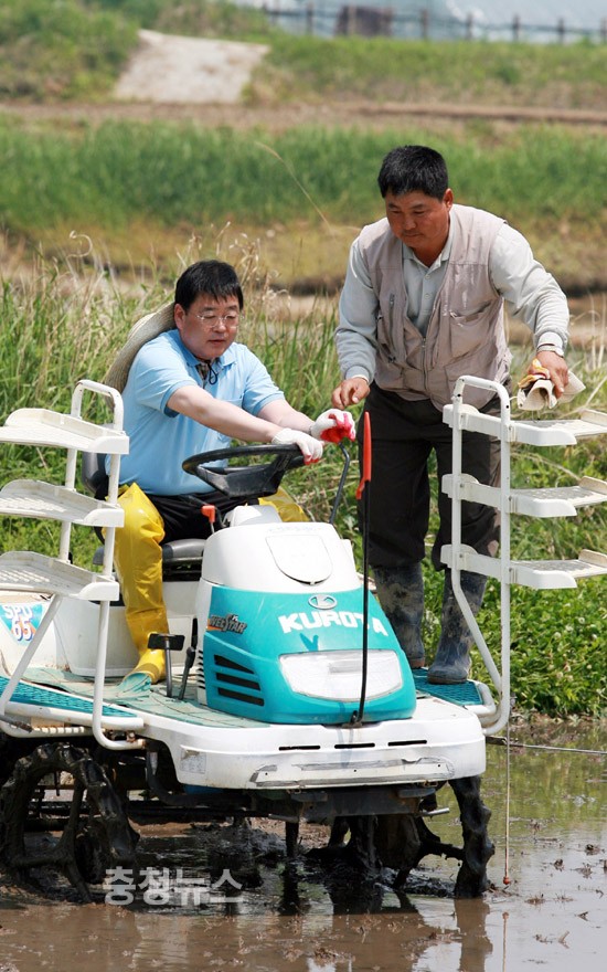 박성효 대전 시장이 본격적인 영농철을 맞아 대전시 최고품질인 ‘미르쌀’ 작목반을 찾아 모내기 직파 농법을 체험하고 농업인들을 격려했다.