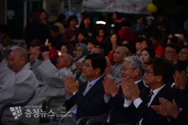 이날 산사음악회는 영평사 주지 환성 스님, 이춘희 시장, 서금택 세종시의회 의장, 최교진 세종시교육감, 김중로 국회의원, 김정환 세종정부청사 경비대장, 홍영섭 사랑의 열매 공동회장, 오영철 일미농산 회장, 고려대학교 김창국 교수, 시민등 1000여명이 함께했다.