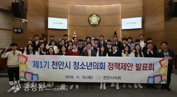 천안시의회(의장 인치견)는 19일 시의회 본회의장에서 ‘제1기 청소년의회 정책 제안 발표회’를 개최했다.