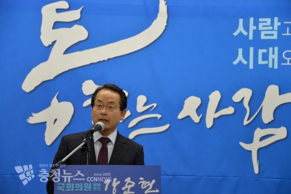 기자회견 하는 강준현 민주당 세종시 국회의원 예비후보 / 충청뉴스 최형순 기자