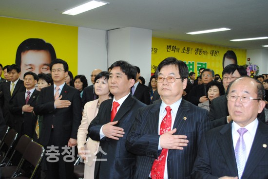 이해찬 전 총리는 격려사를 통해, “행복도시는 이명박 대통령의 임기동안 원안도 수정안도 통과가 안 될 것”이라며, “이명박 정부를 단호하게 심판하는 선거가 이번 지방선거”라고 주장했다.