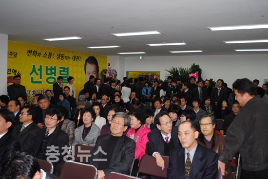 이날 개소식에는 김근태 전 당의장과 이해찬 전총리, 박병석 국회의원, 김효석 민주정책연구원장, 노영민 대변인, 양승조 국회의원, 박범계 대전시당위원장과 김순호 신부, 광재사의 경원 주지스님 등 출마예정자와 지지자 700여 명이 참석해 선병렬 예비후보의 당선을 기원했다.