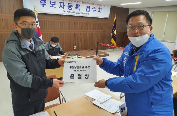 21대 총선과 함게 치러지는 충남도의원 보궐선거 후보 등록 첫 날인 26일 윤철상 후보가 천안시 제5선거구 후보 등록을 하고 있다. 저작권자 © 충청뉴스 무단전재 및 재배포 금지 최형순·이성현 기자 다른기사 보기 기사가 마음에 드셨나요? 충청뉴스 좋은 기사 후원하기 1,000원 3,000원 5,000원 10,000원 30,000원 50,000원 직접입력 비회원 약관동의하기 ※ 소중한 후원금은 더 좋은 기사를 만드는데 쓰겠습니다.