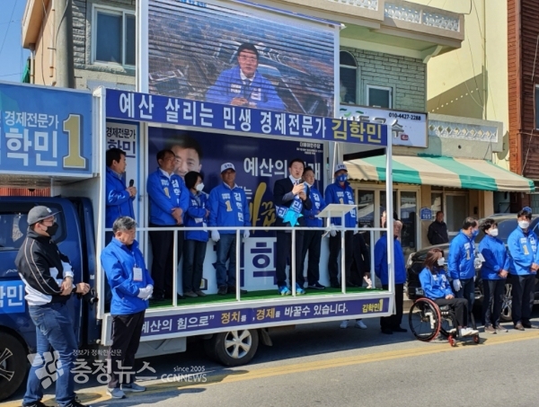 김 후보는 합동 유세에서 ‘내포혁신도시 완성을 통한 예산∙홍성의 연계 균형적인 발전, 부모부양 효도가족 수당지급 및 부모동반 여행시 지역화폐 지급 정책 추진, 예산역 고가화 및 산성지하차도 복개공원화 추진을 통한 지역 공간 효율화 추진, 국가 재난극복 참여자 온천 치유센터 건립으로 덕산온천 상권 활성화’ 등의 공약을 발표하며 유권자들의 눈길을 끌었다.