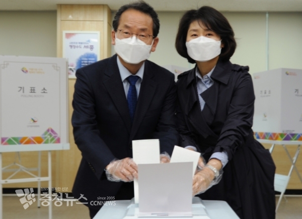 10일 오전 9시 조치원읍사무소에서 배우자와 소중한 한 표 행사