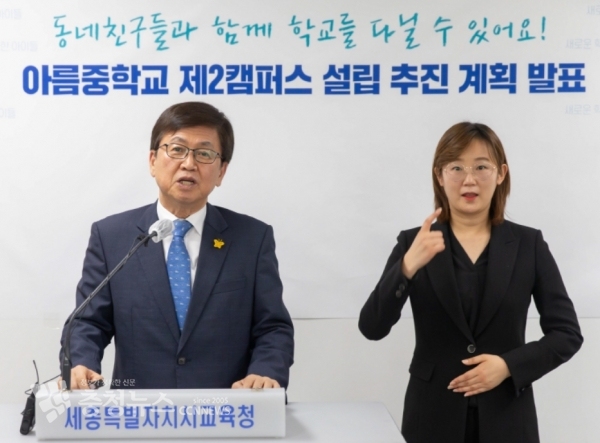 시교육청은 아름중 제2캠퍼스를 본교와는 별다른 이동 없이도 교육과정을 독립적으로 원만히 운영할 수 있도록 건립할 계획이다.