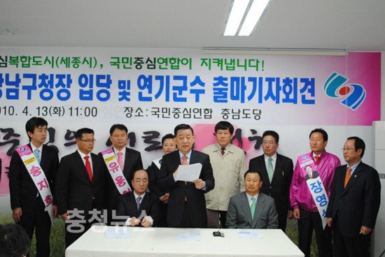 자랑스럽고 아주 고맙고 겸손한 마음으로 이 임무를 수행하겠다. 그런 뜻에서 당당하게 국민중심연합의 후보로 연기군수선거에 출마해 반드시 승리하겠다고 다짐했다.