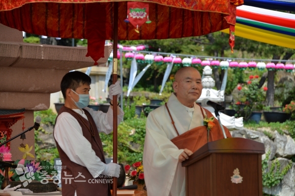 이날 봉축 법요식에서 광원환성 주지스님은 법문을 통해 “부처님의 지혜와 자비로 재난 극복과 모든 생명의 평화와 행복을 만들어 가자”고 설파했다.