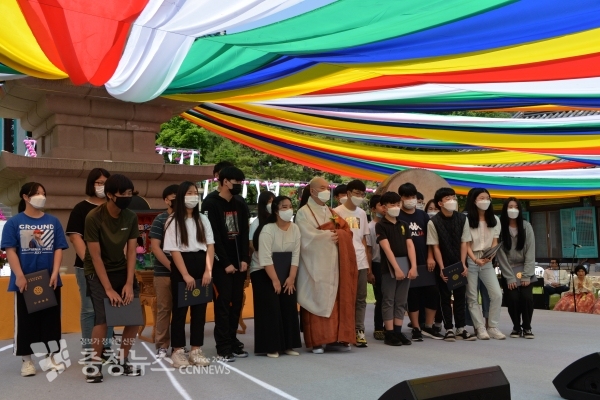 이와함께 광원환성 주지스님은 영평사 초창기 신도인 염불화 자녀들이 매년 1천만원의 보시금으로 마련한 장학금을 수여했다.