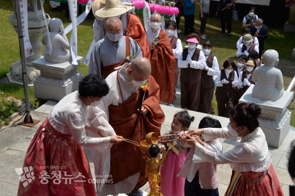 끝으로 광원환성 주지스님을 시작으로 대웅보전 앞에서 아기부처님을 목욕시켜드리면서 자신의 몸과 마음의 때를 씻어내는 욕불의식으로 이날 봉축법요식 행사가 마무리됐다.