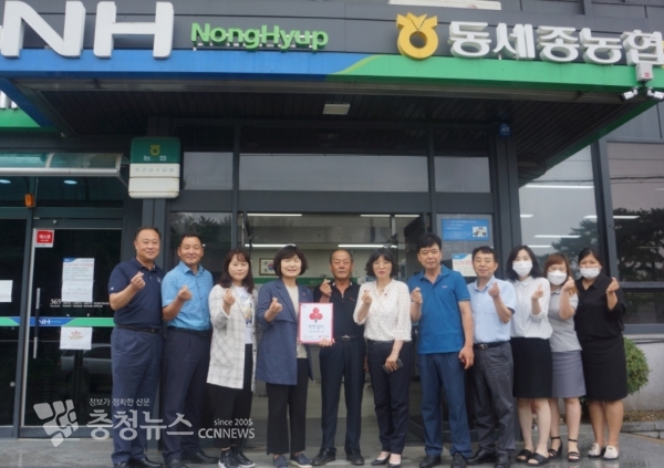 세종사회복지공동모금회(회장 홍영섭)는 23일 세종특별자치시 연동면(면장 황미라)에 위치한 동세종농협(조합장 강영희)이 착한일터에 가입하여 현판을 전달했다.